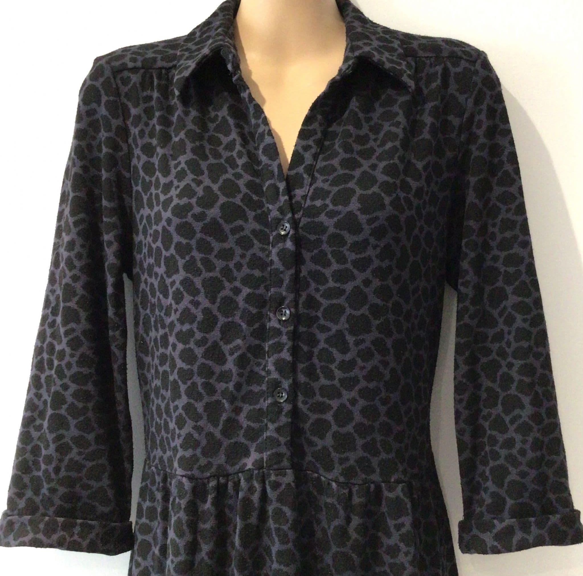 BILLIE & BLOSSOM BLUE/BLACK LEOPARD KNIT SHIRT MIDI DRESS SIZE 12