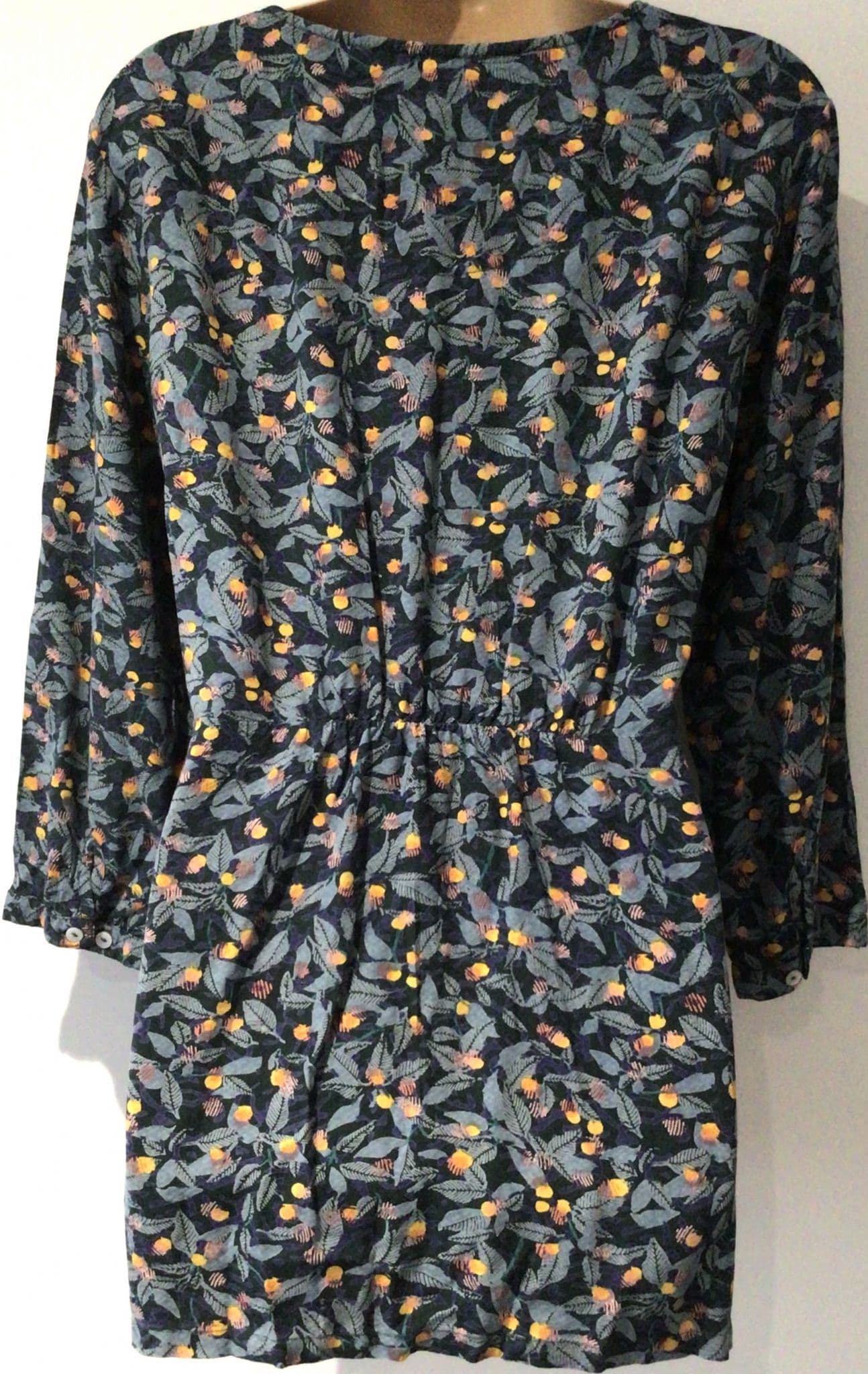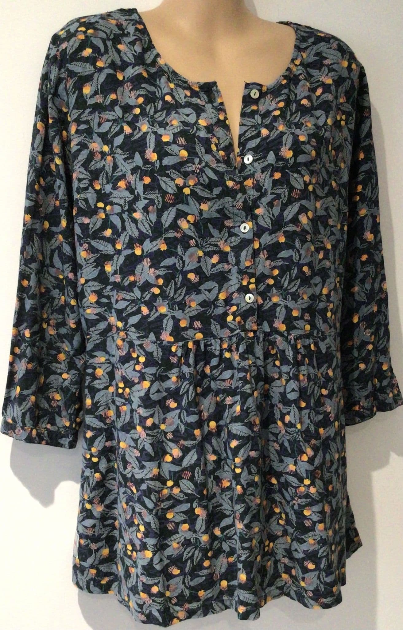 BRAKEBURN BLUE LEAF PRINT BUTTON TUNIC BLOUSE SIZE 12