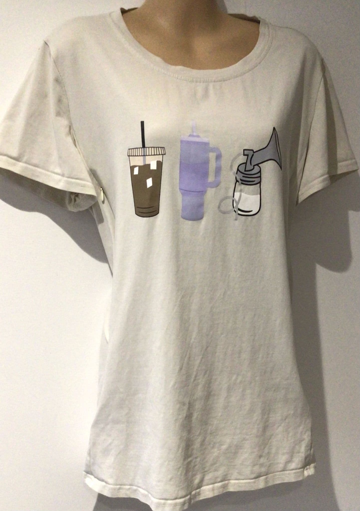 CREAM PUMP PRINT NURSING ZIP T-SHIRT TOP SIZE 14/16