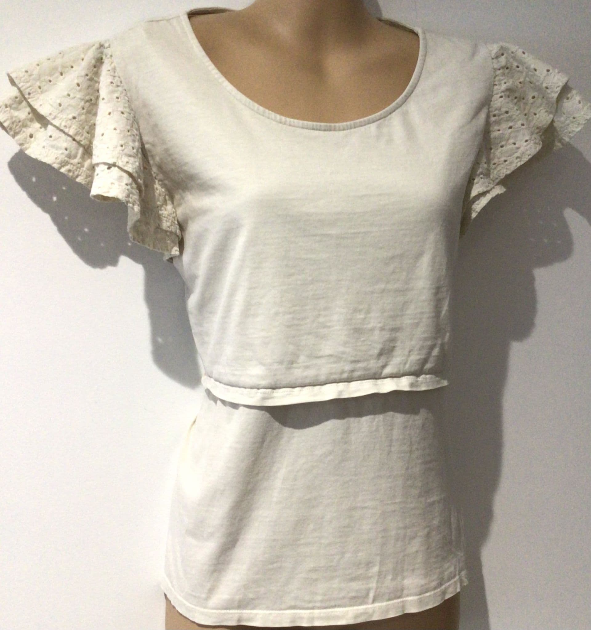 H&M MAMA CREAM BRODERIE SLEEVE NURSING TOP SIZE M 12