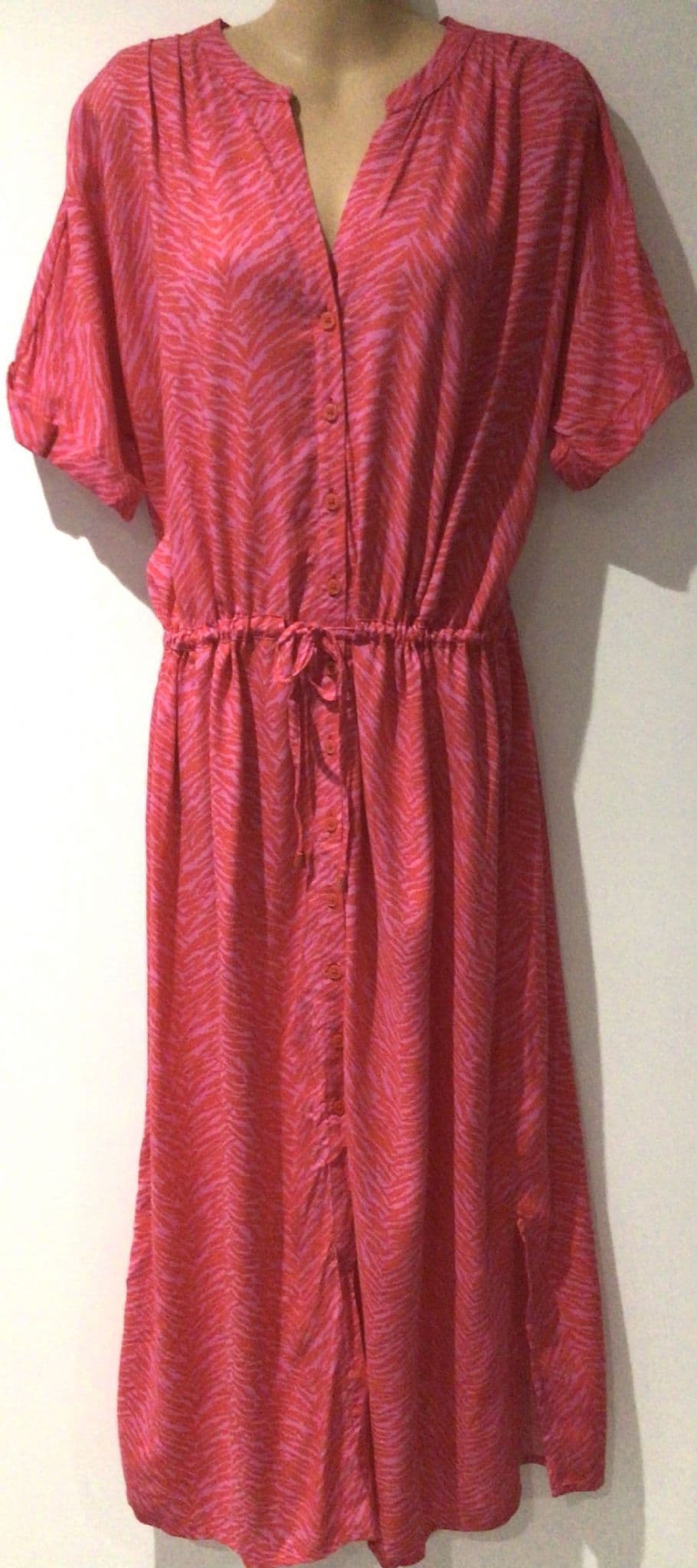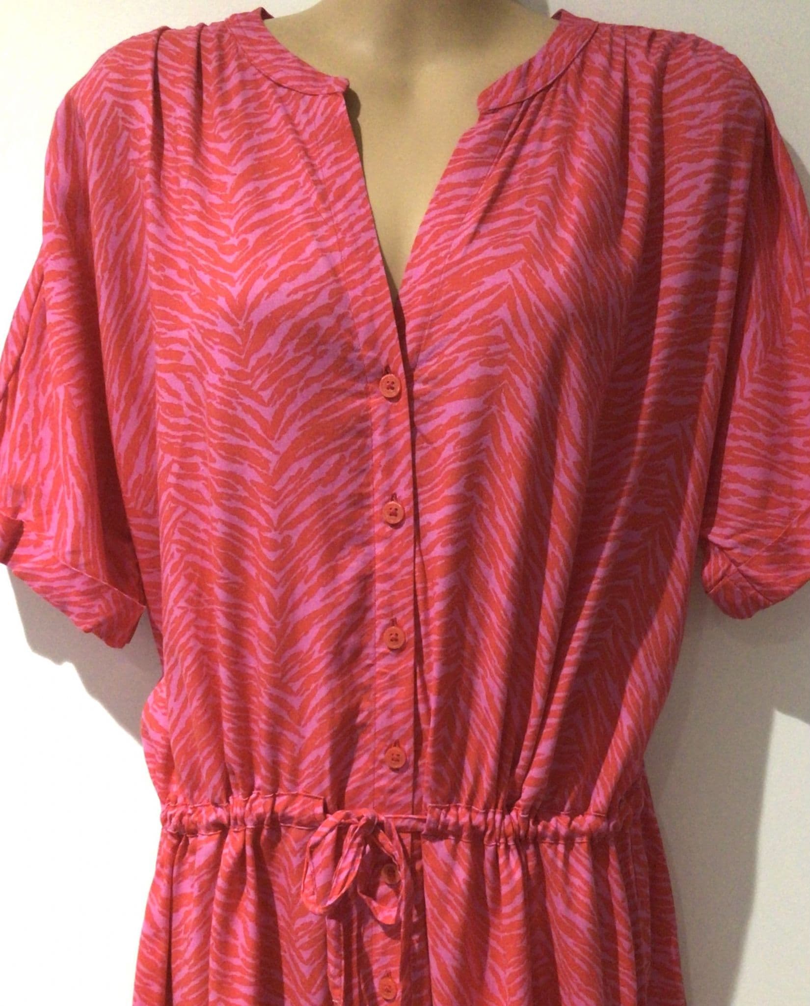 JOULES EMILIE PINK ZEBRA FLORAL BUTTON MAXI SHIRT DRESS SIZE 14