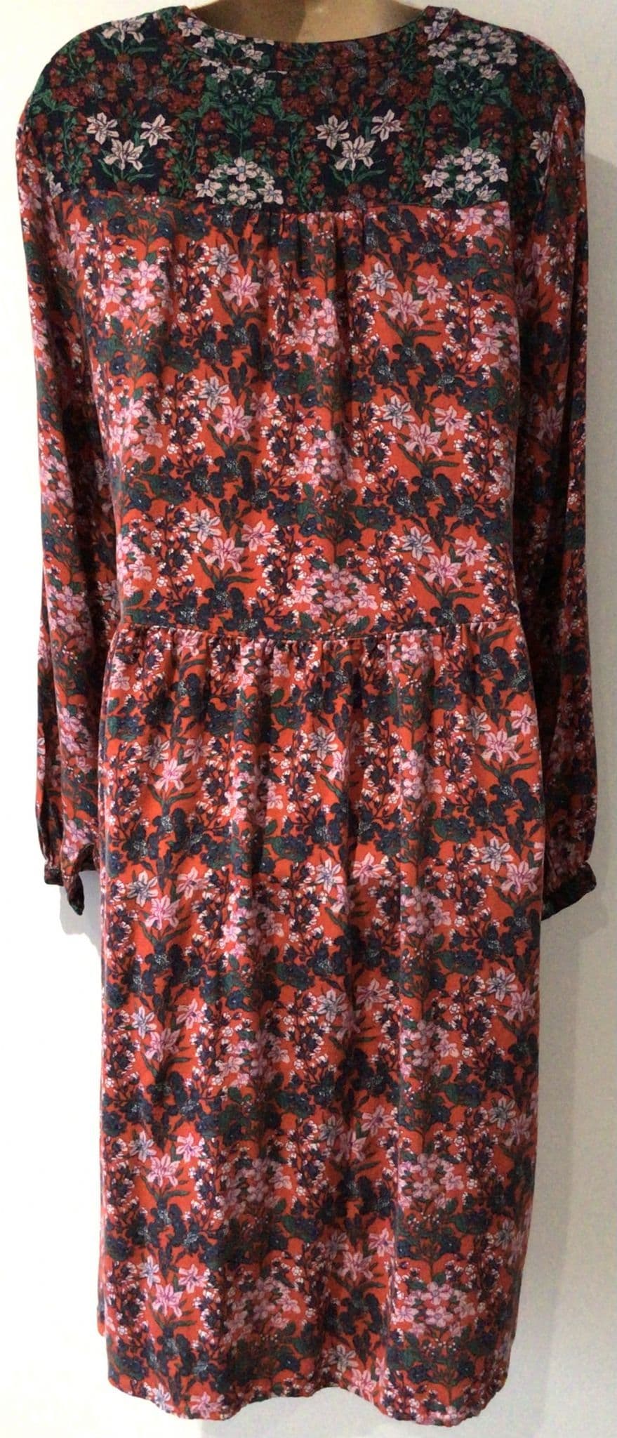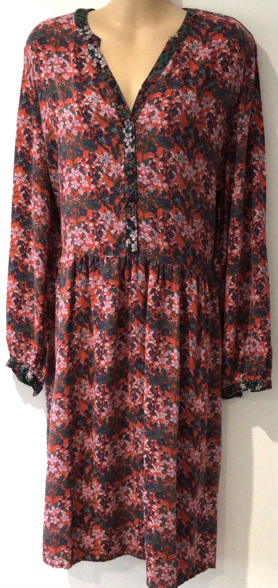 JOULES RED SOPHIA NEEDLECORD FLORAL PRINT BUTTON TEA DRESS SIZE 12