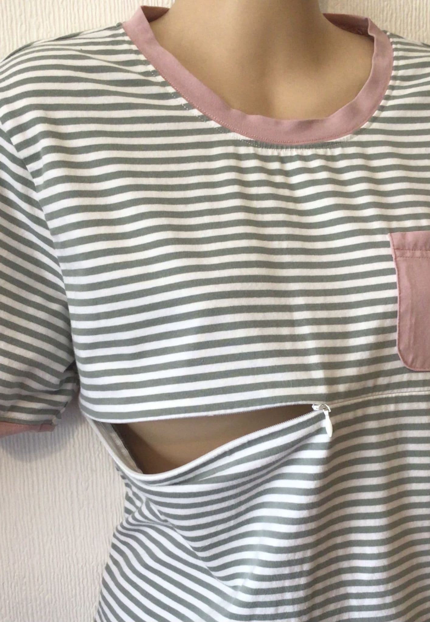 JUNO JACKS MOLLY KHAKI/PINK STRIPE NURSING TOP SIZE 16 (1)
