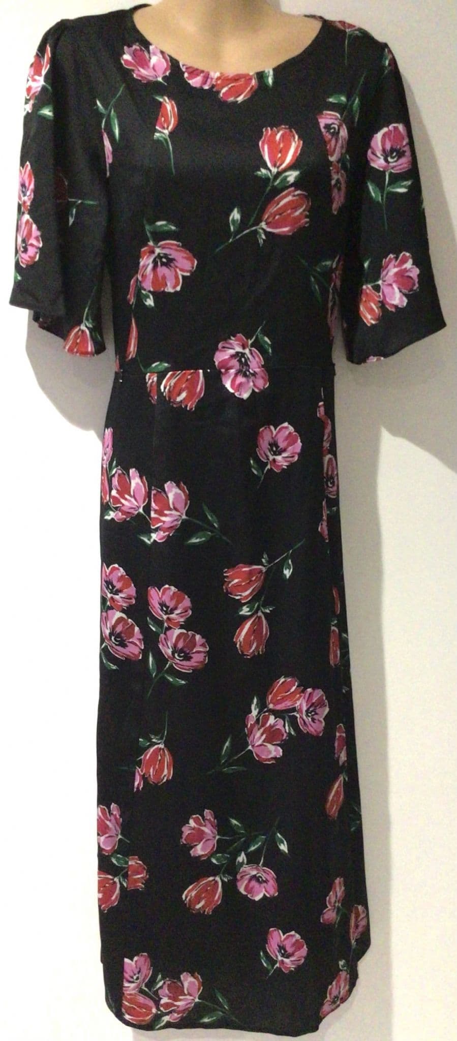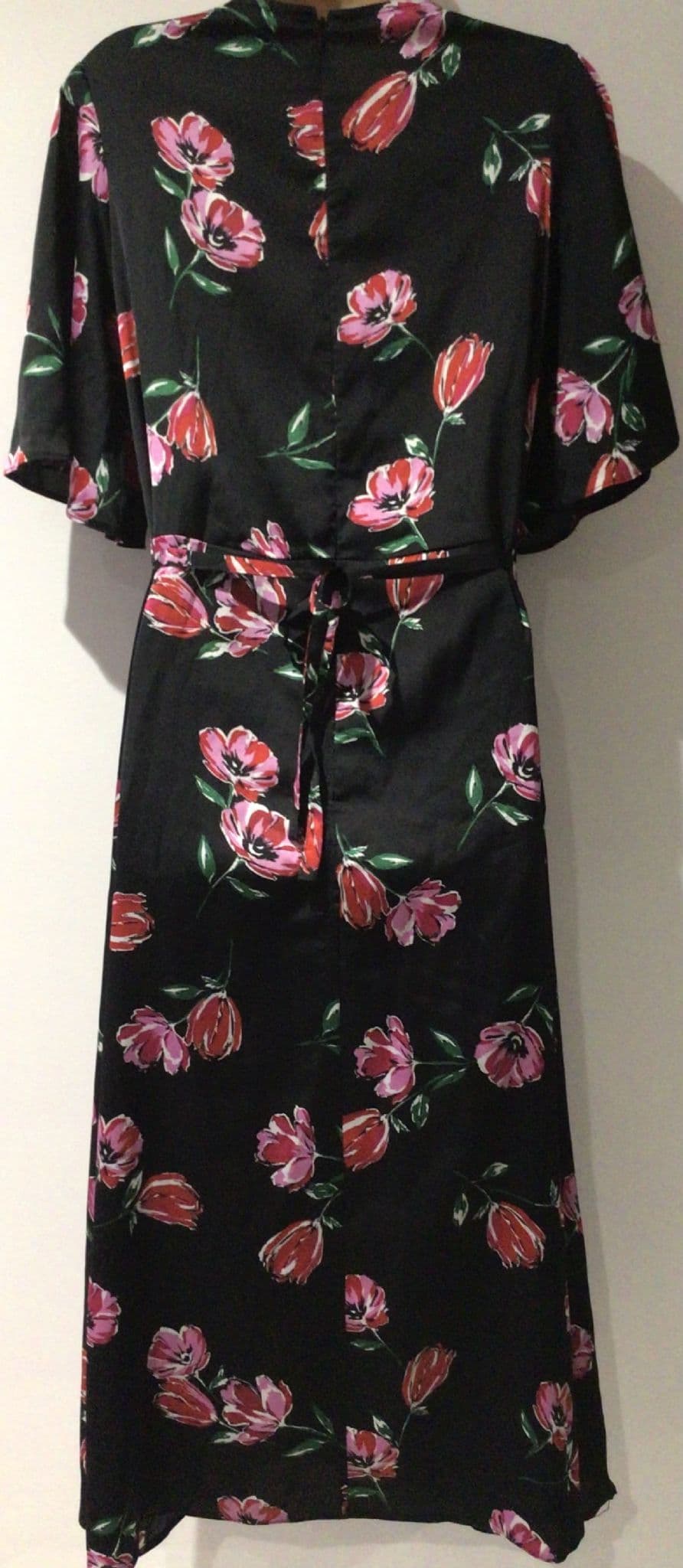 LYLA & LECHE BLACK/PINK FLORAL TIE BACK MIDI NURSING DRESS SIZE 12