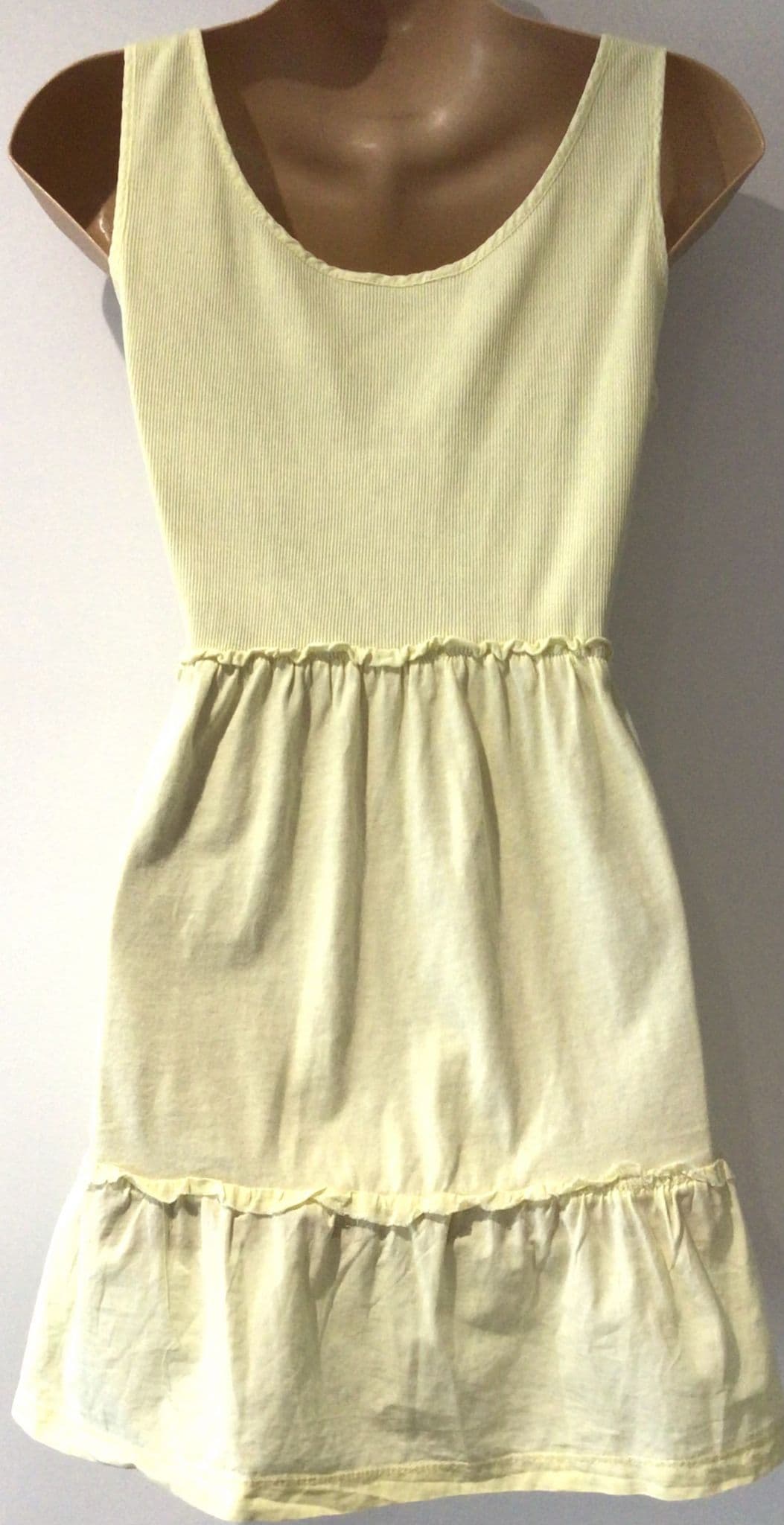 Ribbed jersey body and lighter cotton hem.