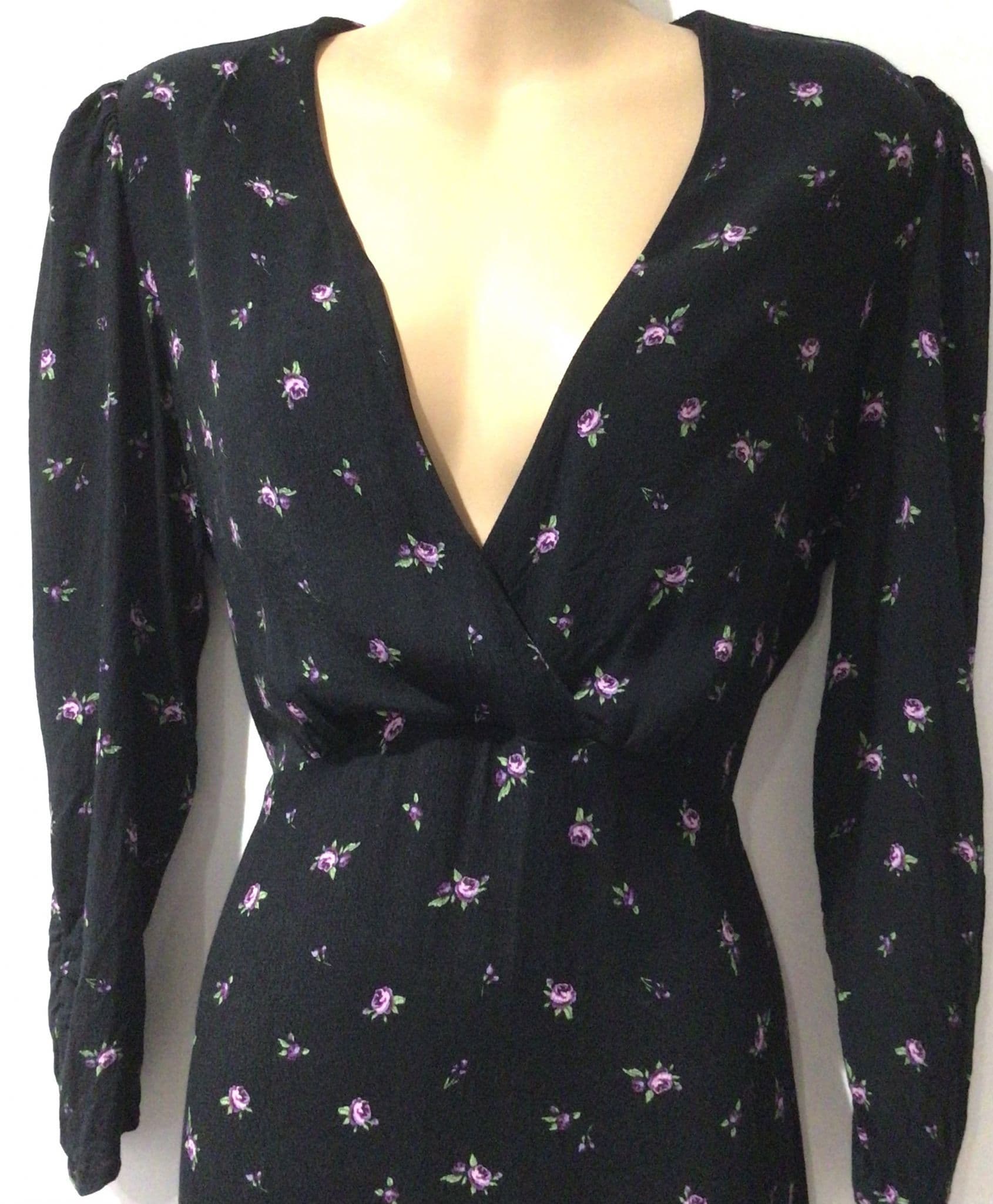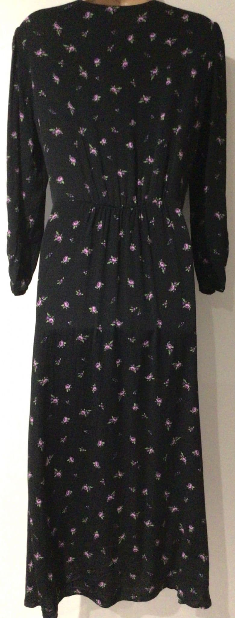 MANGO BLACK FLORAL OCCASION MIDI DRESS SIZE L 12-14