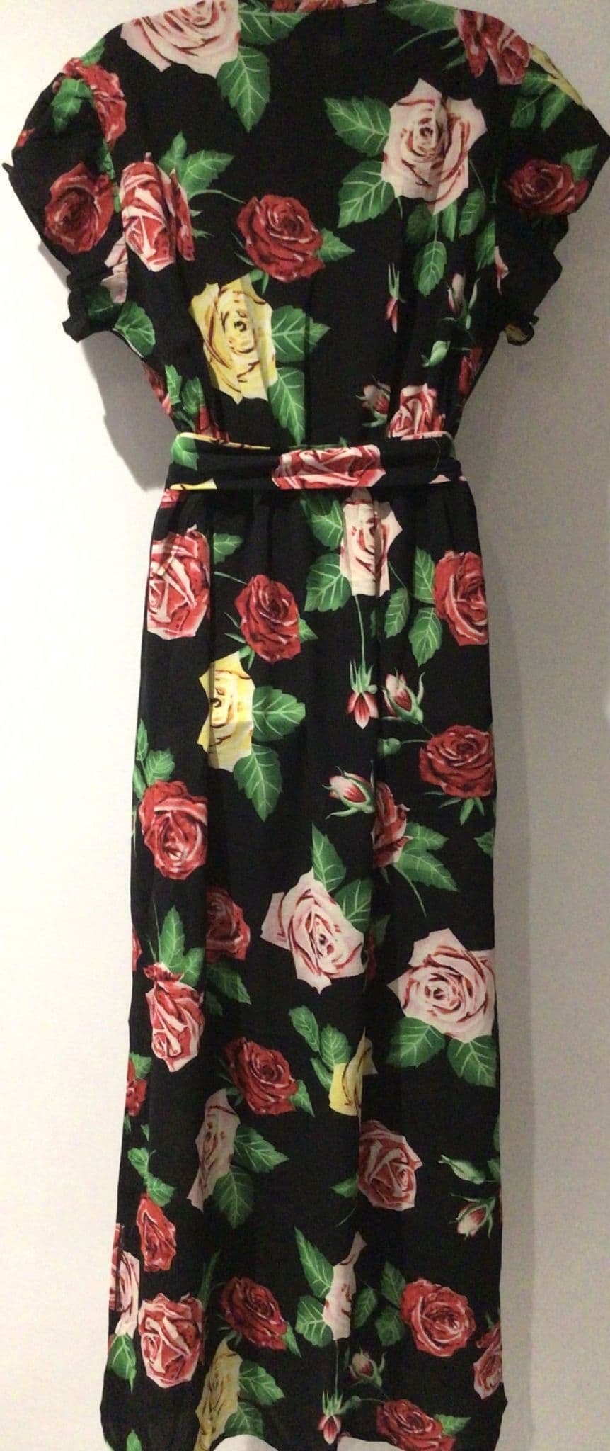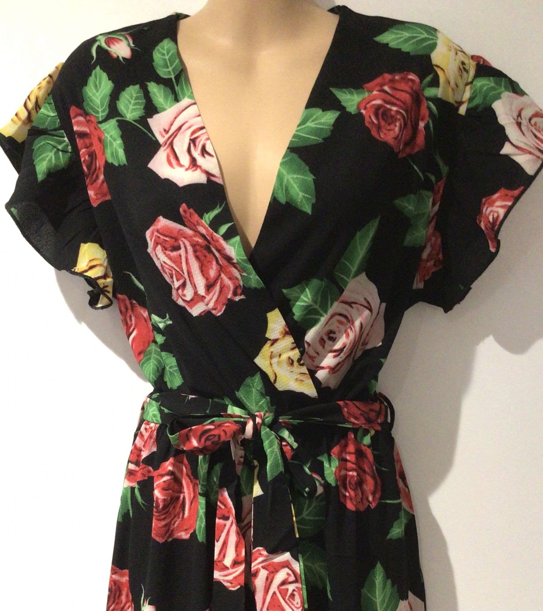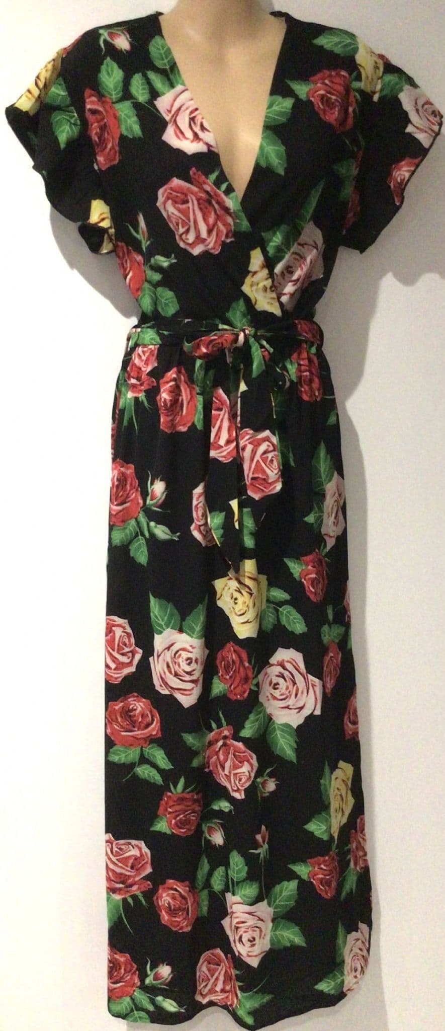 MELA LOVES LONDON BLACK FLORAL WRAP MAXI DRESS SIZE 16