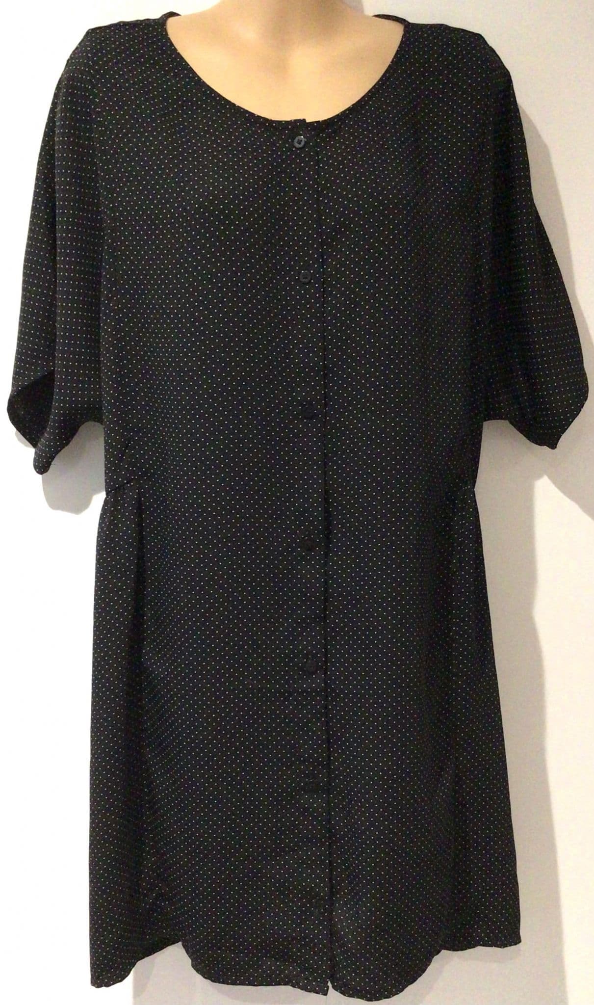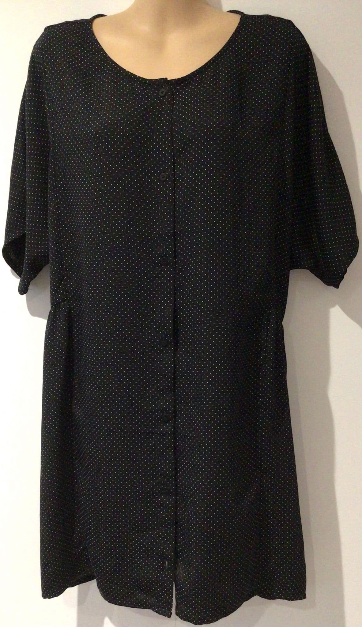 MONKI BLACK POLKA DOT BUTTON OVERSIZED TUNIC SHIRT DRESS SIZE M 12-16