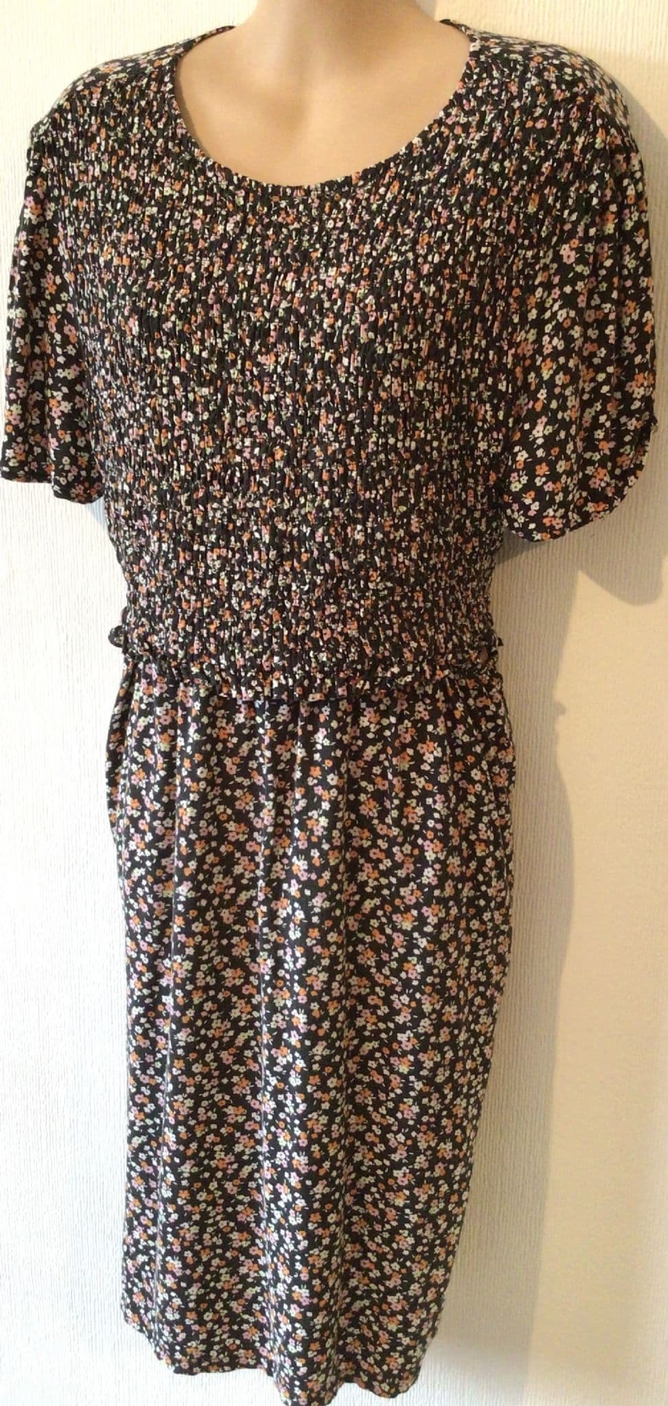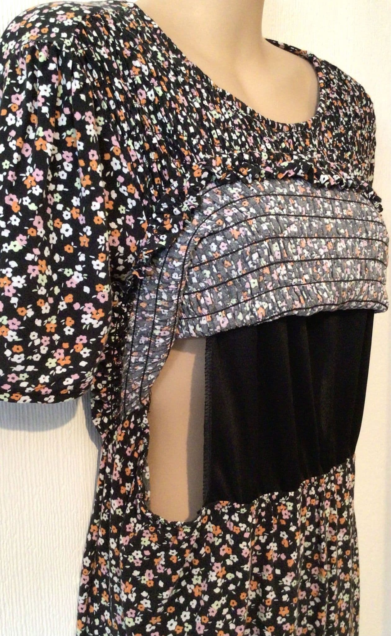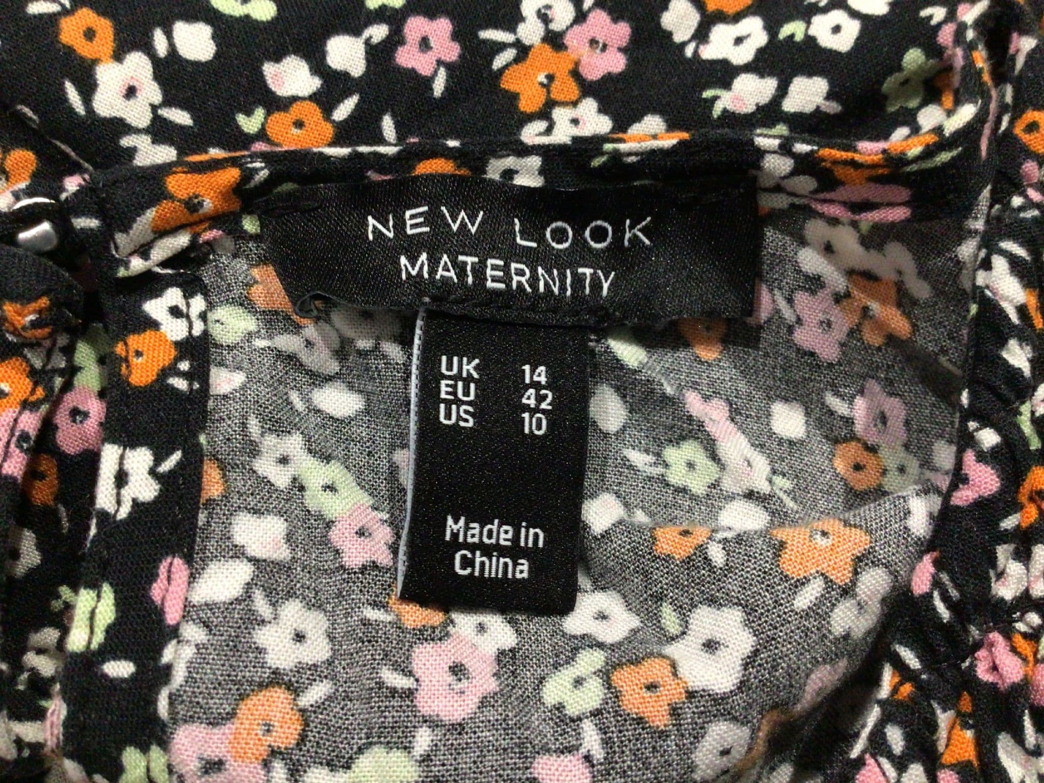 NEW LOOK MATERNITY NURSING SHIRRED BLACK/ORANGE FLORAL MIDI DRESS SIZE 14