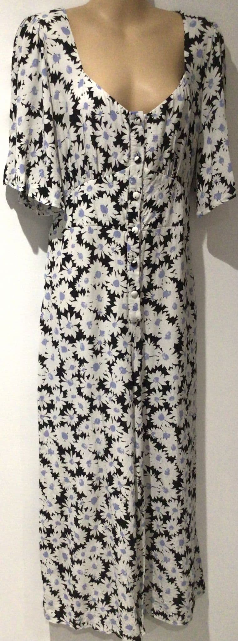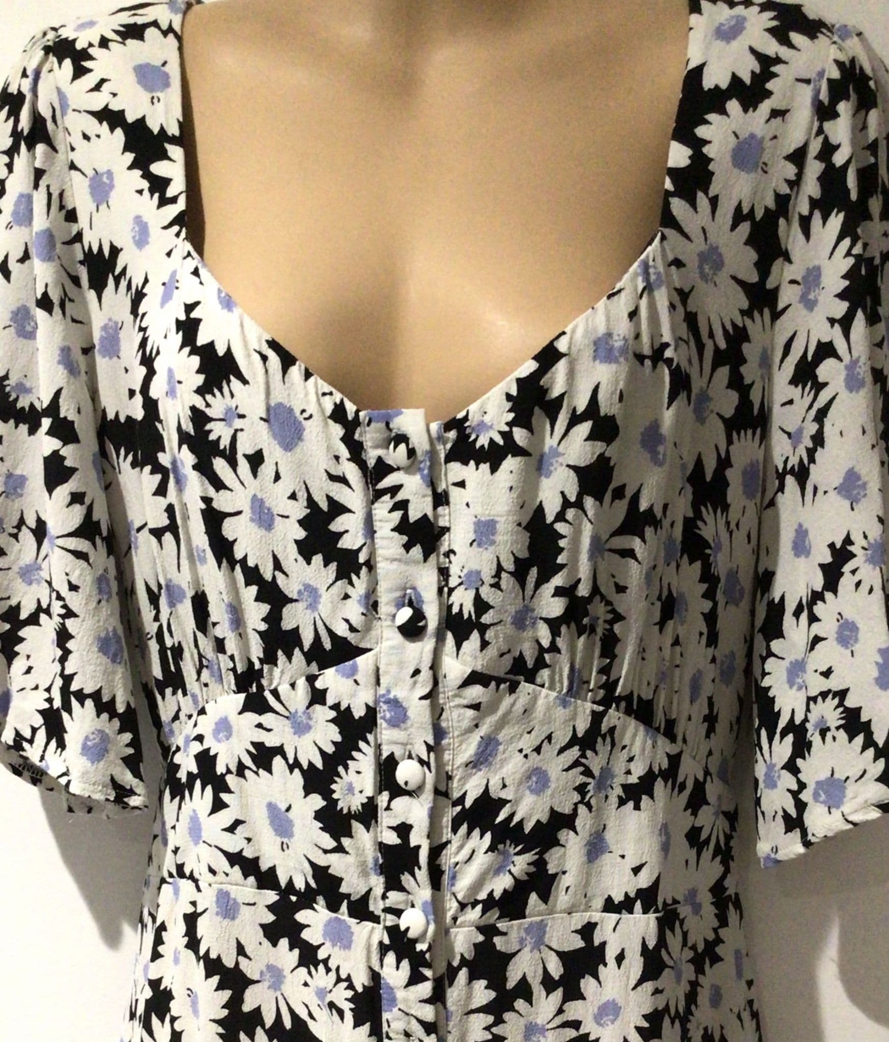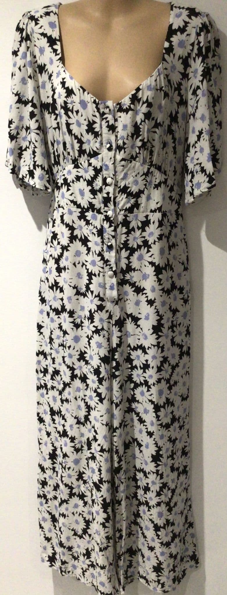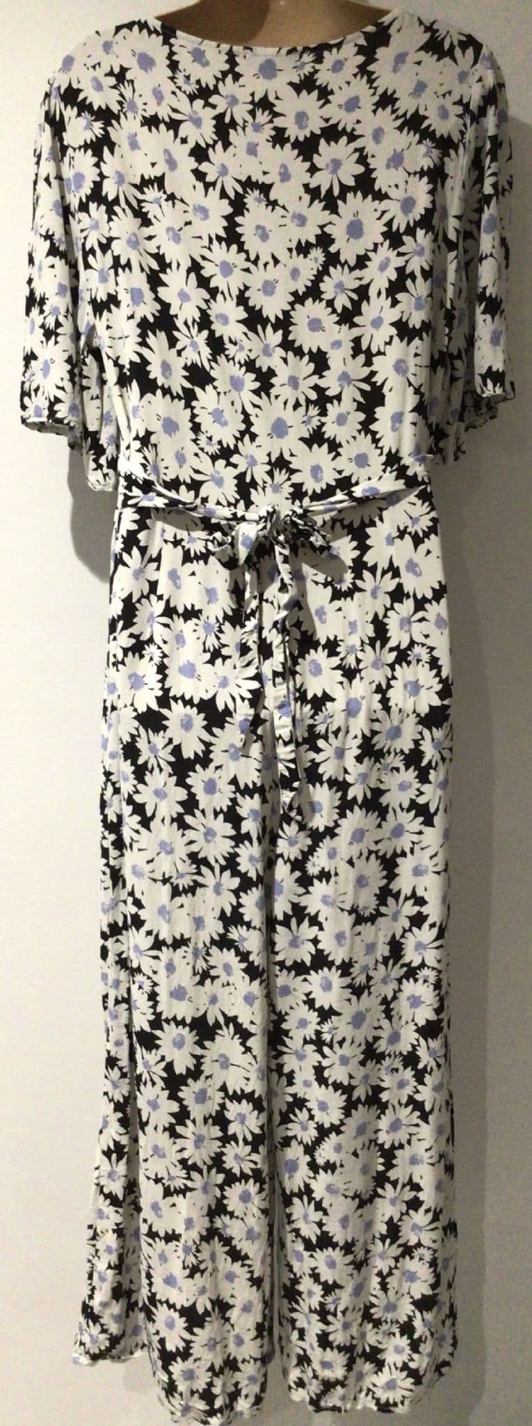 NOBODYS CHILD BLACK/WHITE FLOWER PRINT BUTTON JUMPSUIT SIZE 14