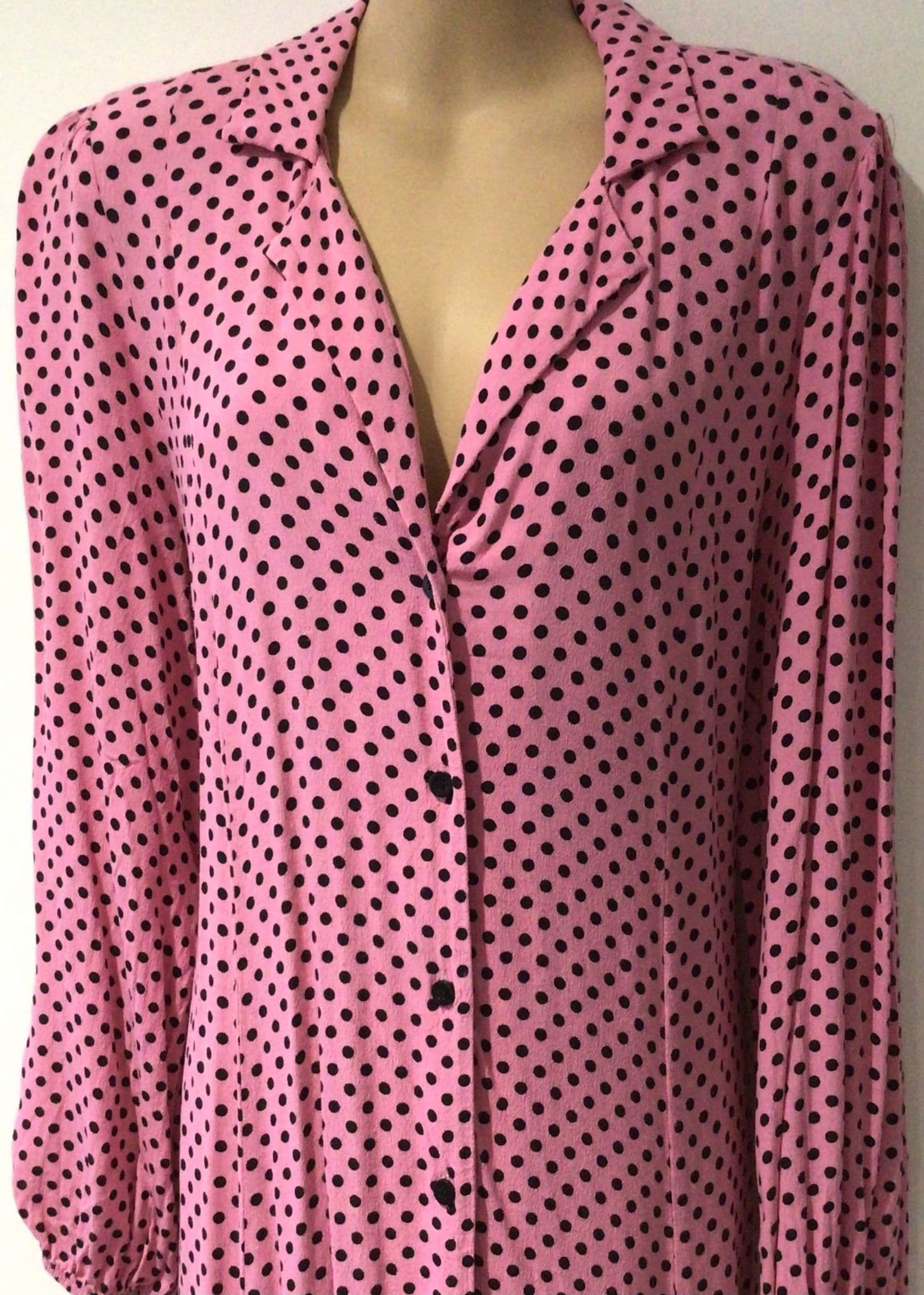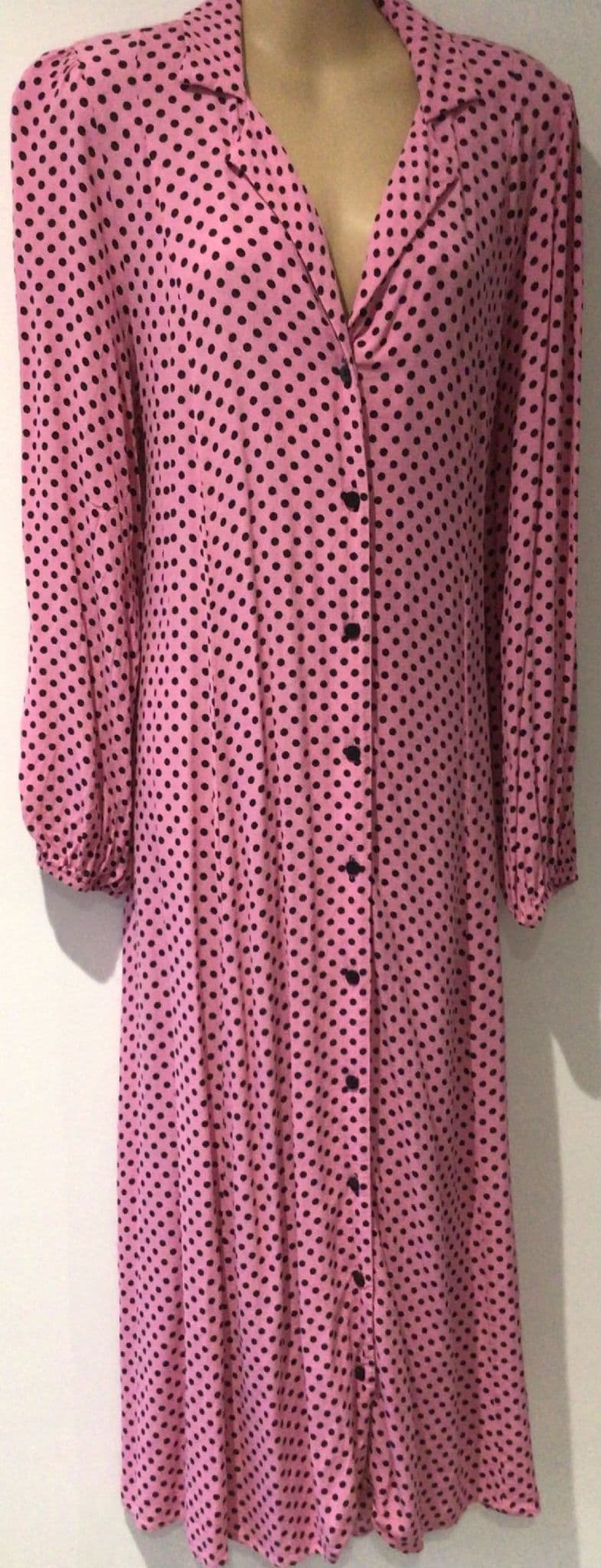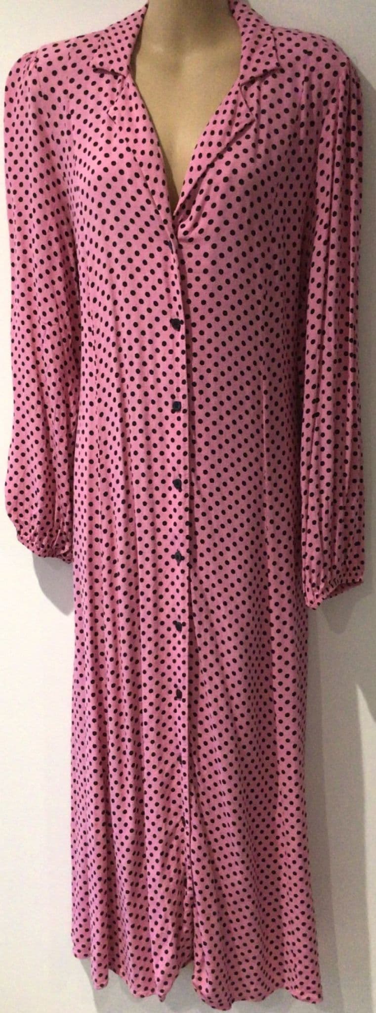 SAVIDA PINK SPOTTY MIDI SHIRT DRESS SIZE L 14/16