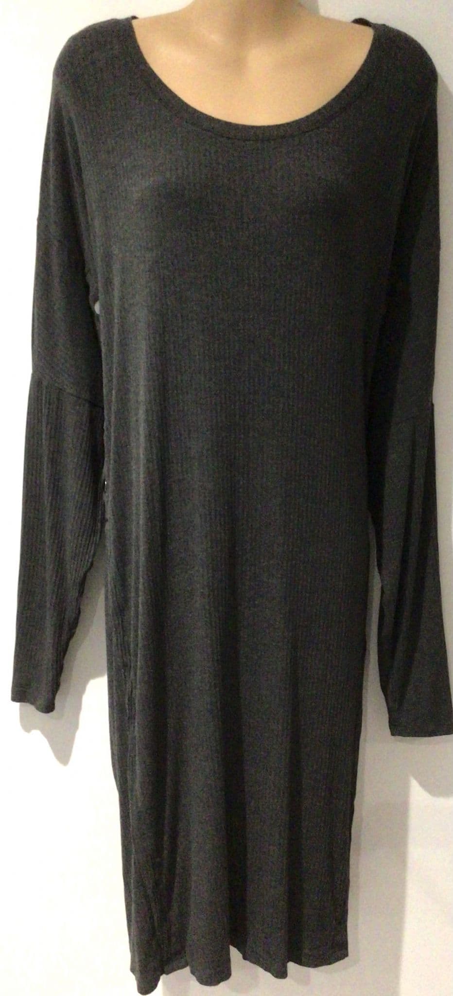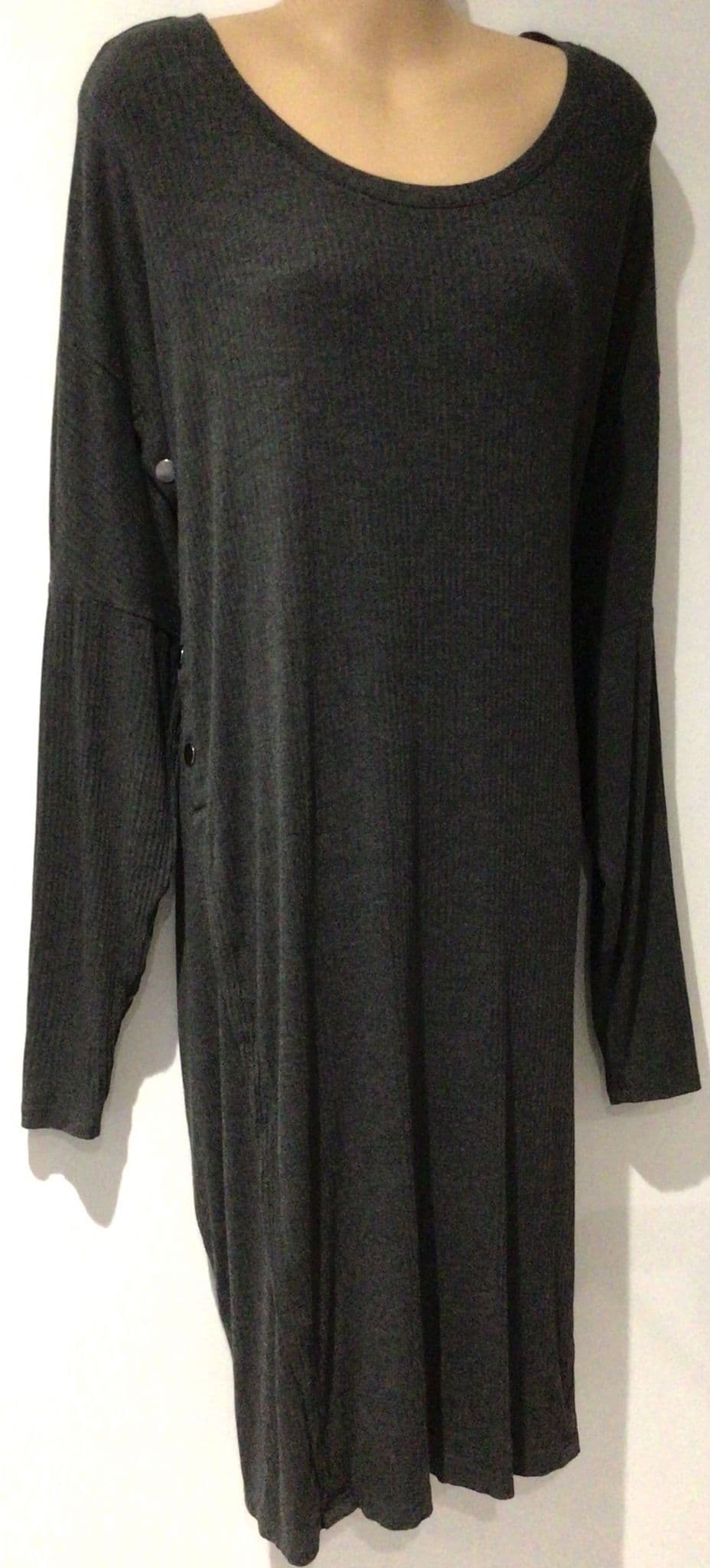 SERAPHINE GREY RIBBED POPPER RELAXED FIT TUNIC DRESS SIZE L 16-18