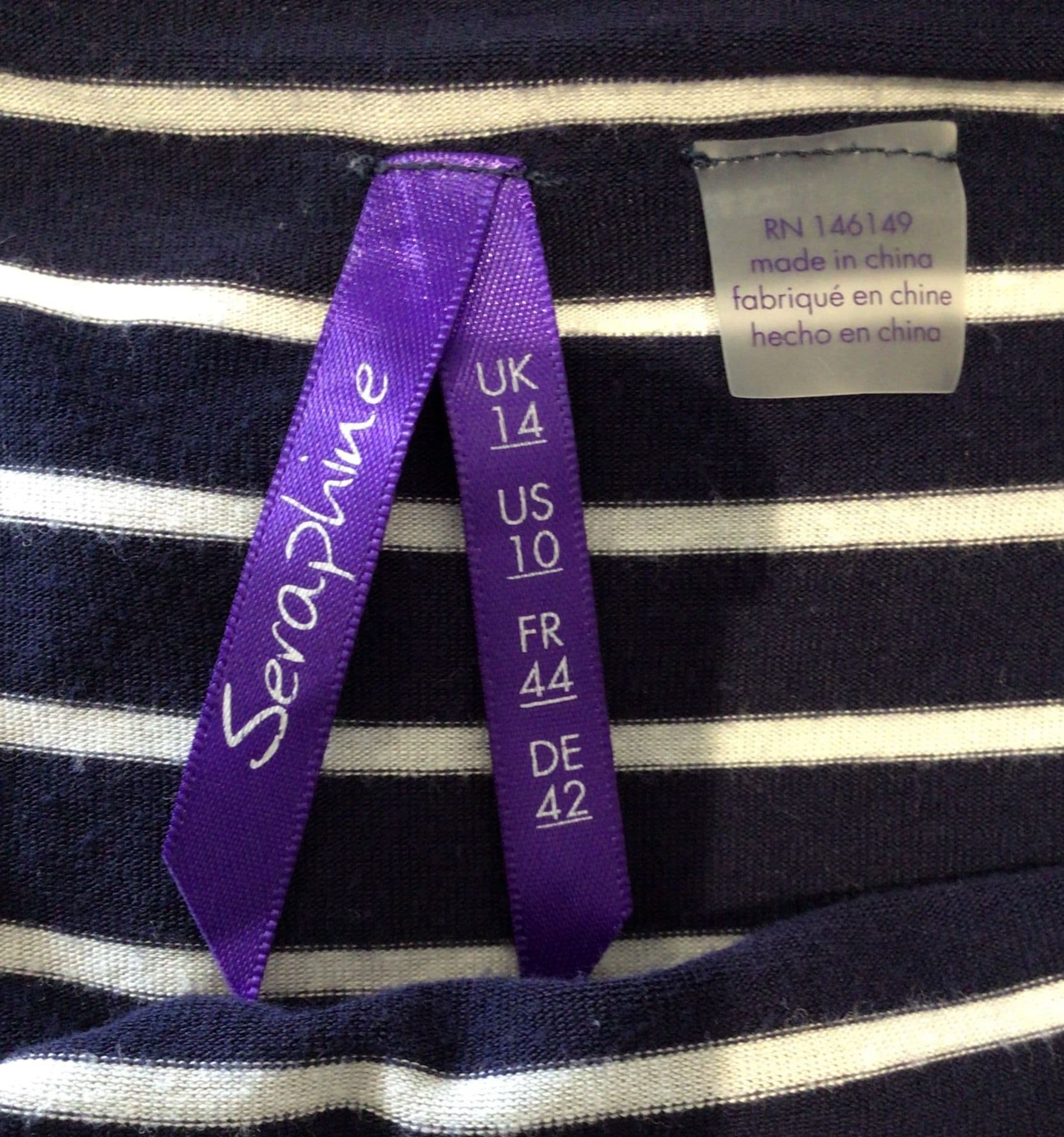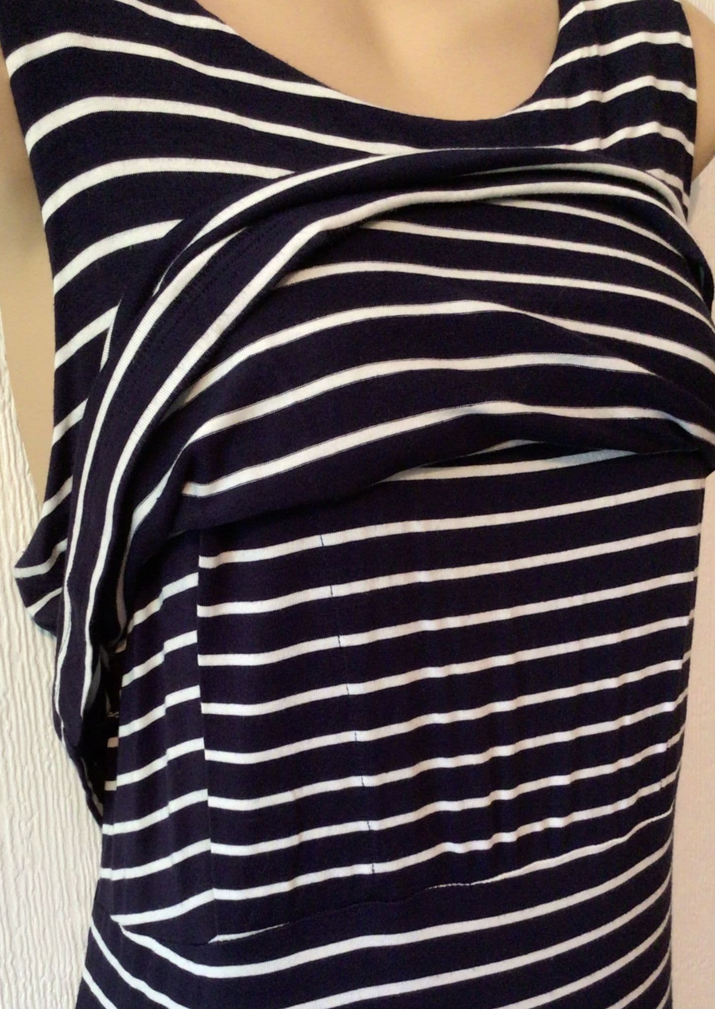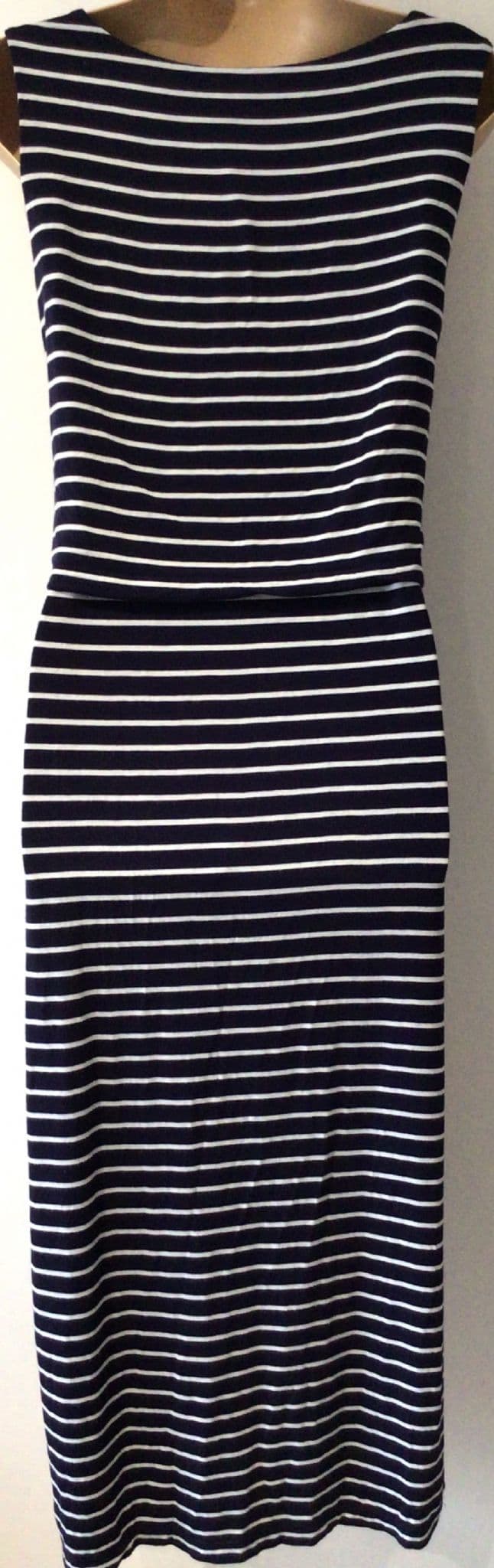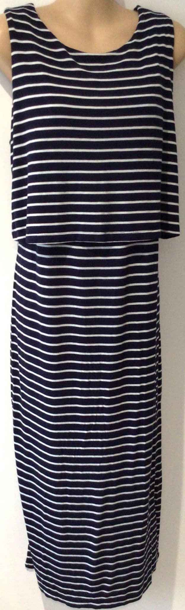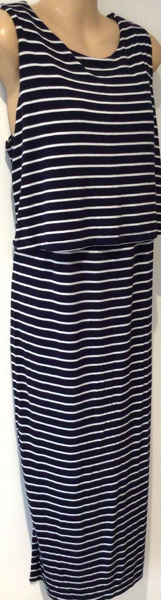 SERAPHINE NAVY STRIPE JERSEY SLEEVELESS MIDI NURSING DRESS SIZE 14