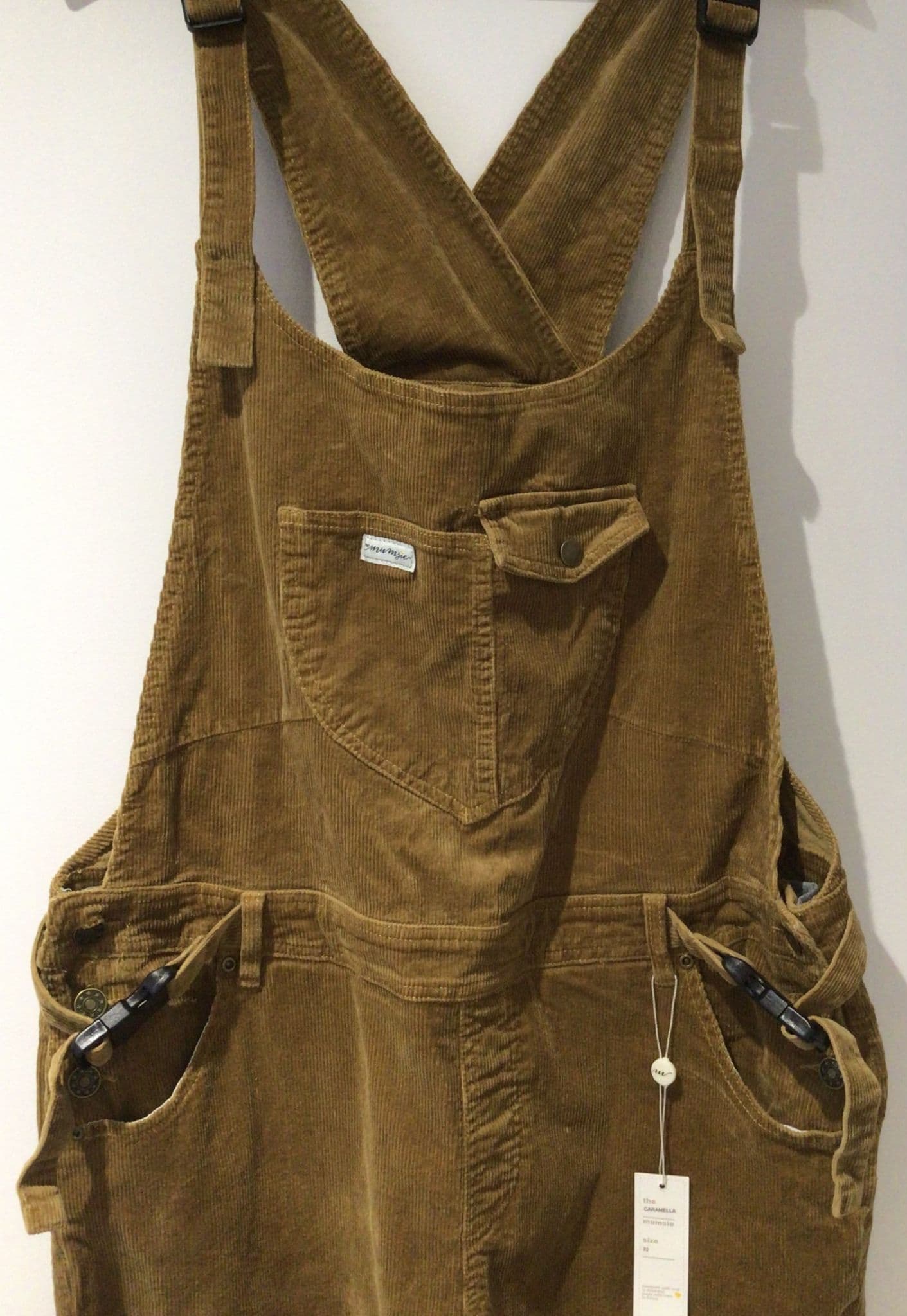 THE MUMSIE CARAMELA CORD STRETCH SLING BABY CARRIER DUNGAREES BNWT SIZE 22